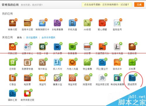 6、然后我們就會看到很多未添加的應用,我們找到固話寬帶,進行添加,然后選擇完成。