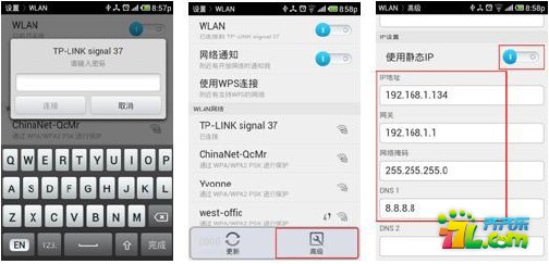 點擊無線名稱進行連接,輸入無線密碼即可連接成功。如果無線連接成功但是上不了網(wǎng),您可以參考下面的圖2、圖3將手機的IP地址指定。