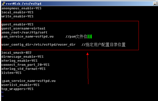 7、修改vsftpd.conf 主配置文件,啟用虛擬用戶支持
