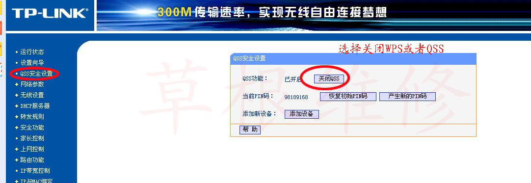 確定之后就是關(guān)閉WPS/QSS功能,一般路由器,在進入設(shè)置界面后,無線設(shè)置里。有些則單獨一個WPS/QSS功能設(shè)置項。我們找到他后選擇關(guān)閉WPS/QSS功能。