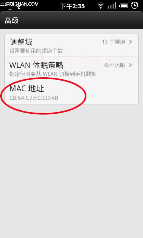 手機最簡單了,在設(shè)置里——進入WLAN設(shè)置,再按手機“menu”鍵,屏幕下方出現(xiàn)小界面有“高級”,進入“高級”,里面可以看到MAC地址或者設(shè)置里,進入關(guān)于手機,然后選硬件信息,里面也可以看到MAC地址,這個方法同樣適用于其它的Android平臺的手機。