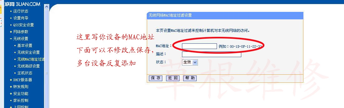 二、路由器開啟無線MAC地址過濾,添加已知設(shè)備能連接,未知設(shè)備連接不到。強烈推薦