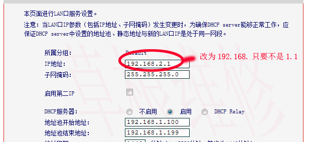 四、更改自己的路由器管理地址。比如你是192.168.1.1或者是192.168.0.1改為你好記的,例如改為192.168.99.1。強烈推薦