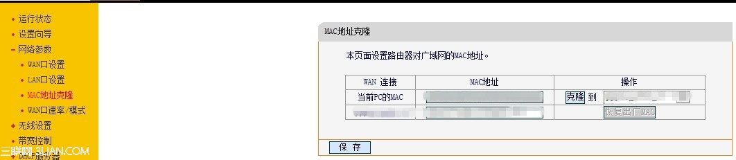 然后點(diǎn)【MAC地址克隆】,一般這個(gè)大家都會忽略。但是我建議不會的朋友還是克隆下比較好,那樣就是把路由器的IP與自己電腦的IP捆綁,這樣上網(wǎng)會快些,不用讓路由器再去識別你的電腦網(wǎng)卡。