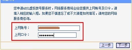 3.在下面窗口正確輸入電信局給您提供的帳號、密碼,點擊下一步。