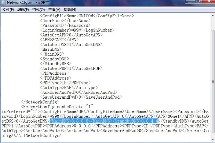 8. 在文件中找到剛才輸入的“8.8.8.0”和“8.8.4.0”并修改成“8.8.8.8”和“8.8.4.4”;