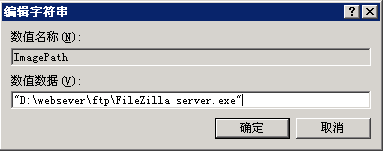 2、現在就可以來修改為正確的路徑了,比如這里正確的路徑是"D:websever tpFileZilla server.exe"。然后確定,并關閉注冊表編輯器。