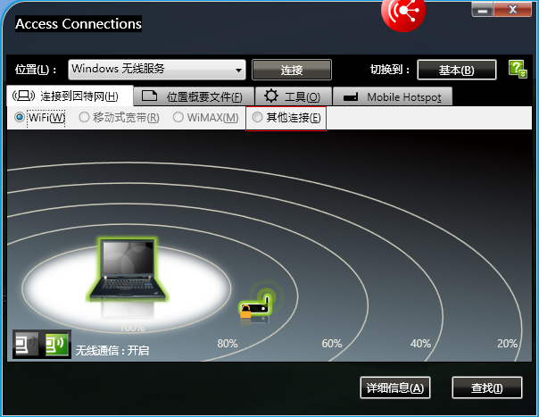 使用Think自帶的ThinkVantage Access Connections中的mobilehotspot功能創建熱點,使用無線創建熱點正常,在mobilehotspot模塊中可以正常點擊開始進行創建,但要使用有線網絡接入進行共享創建熱點,發現點擊mobilehotspot模塊中的開始按鈕,呈現灰色不可選狀態,導致無法創建熱點。