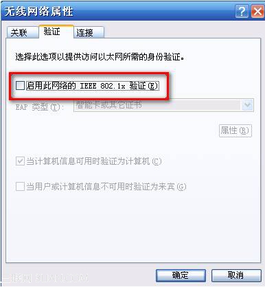 4. 點擊“驗證”,將“啟用此網絡的IEEE 802.1x驗證”前的勾取消。