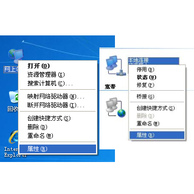 1.2右擊“本地連接”,點(diǎn)擊“屬性”。