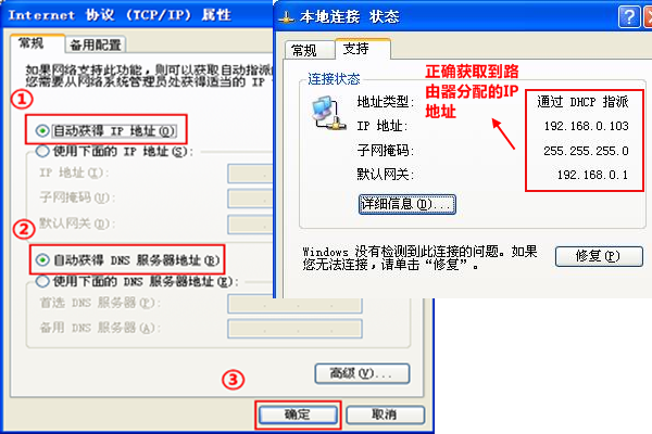 (1)、將電腦設(shè)為自動獲取IP.(Windows XP系統(tǒng)、Windows7系統(tǒng))。