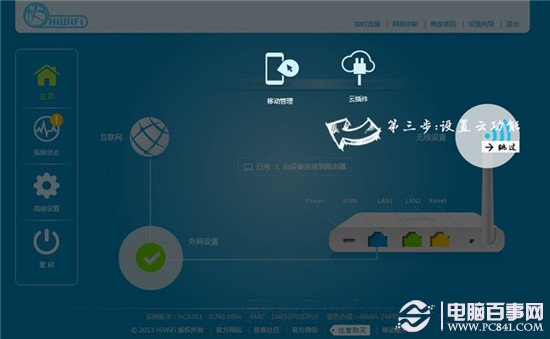 這在極路由的安裝和設(shè)置過程中是不會出現(xiàn)的,極路由采用基于OpenWrt二次開發(fā)的HiWiFi嵌入式智能系統(tǒng)。采用圖形化界面引導(dǎo),新手兩三步就能設(shè)置出正確的路由配置。
