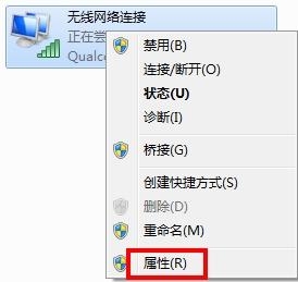 以前能正常上網,但由于無線改了密碼而不能連上無線網的。由于WIN7有無線密碼記憶功能,保存了之前的無線密碼而導致不能正常上網。應點擊無線網絡®右擊無線網絡®選擇“屬性” ®在彈出的對話框中輸入改后的正確密碼®單擊“確定”即可。