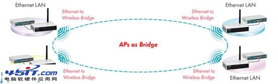這種模式下,可以多個無線AP相互連接起來,組成1個可以互訪的>局域網,每個AP后面可以加裝交換機等設備,方便多機使用,工作在Bridge模式下的設備 用無線網卡搜索不到其發射的無線信號。