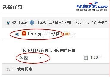2、在優惠信息中,選擇需要使用的紅包及金額,再進入下一步即可完成紅包抵扣