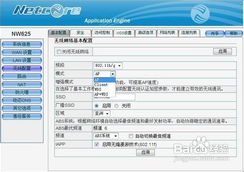 9.然后,我們再來配置無線網(wǎng)絡。點擊左側的“無線配置”鏈接,然后在右邊的“基本配置”選項卡下取消“關閉無線網(wǎng)線”前面的復選框,并單擊“應用”按鈕: