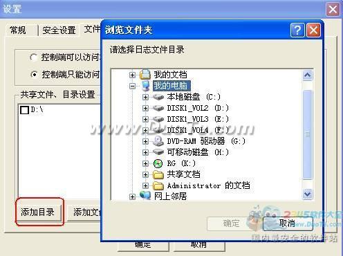 二、只共享指定文件或文件夾。選擇“控制端只能訪問所設置的共享目錄或文件”—“添加文件”—“添加文件”。