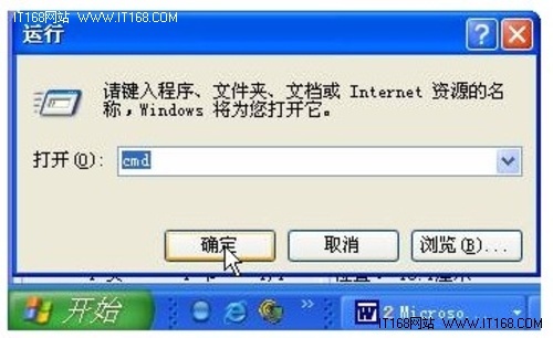 a)點(diǎn)擊“開始”->”運(yùn)行”,輸入cmd,點(diǎn)擊“確定”,打開DOS命令行: