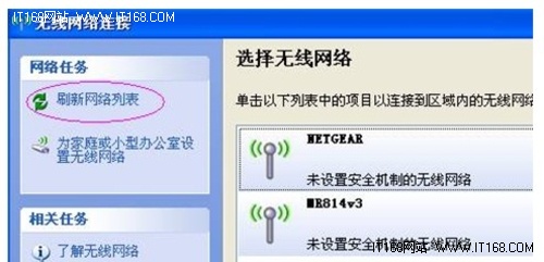 5.2. 點(diǎn)擊左上方的“刷新網(wǎng)絡(luò)列表”,系統(tǒng)會將搜索到的無線網(wǎng)絡(luò)在右邊列出,選中您想接入的無線網(wǎng)絡(luò),點(diǎn)擊右下方的“連接”即可: