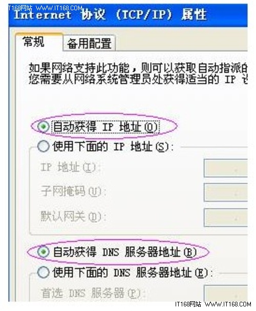 2.2. 將電腦設(shè)為“自動獲得IP地址”,“自動獲得DNS服務(wù)器地址”點(diǎn)擊“確定”: