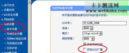 其實設置隱藏無線網絡SSID號是很簡單的,只需要在把“開啟SSID廣播”前面的勾去掉就行了。如下圖:(本例路由器是TL-WR841N)