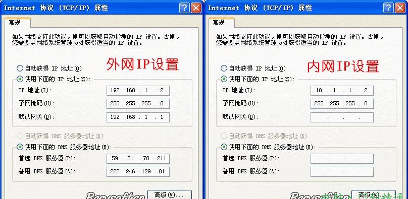 這是一個很典型的內部網絡,核心交換機分別連著辦公網、生產網和服務器網絡的匯聚交換機。裝有雙網卡的機器是網絡中普通的一臺。外網通過一個路由器做NAT上公網,這和在家里使用小路由器上網沒什么區別。二、數據配置:在這里我們假設:外網網段:192.168.1.0/24;外網網關:192.168.1.1;D N S:當地運營商提供的公網DNS。內網網段:10.1.1.0/24;辦公網:10.10.1.0/24;生產網:172.16.1.0/24;服務器:192.168.100.0/24;首先,當然是配置內外網的IP地址。配置方法可以參考本站教程:[圖解]手動更換本地IP地址。