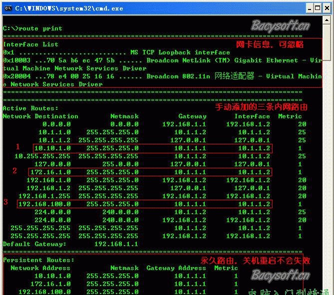 注意事項:僅配置外網網卡的網關和DNS;內網只配置IP地址和對應掩碼即可。接著,在CMD窗口下使用 route add 添加內部業務網網段到本機路由表中。