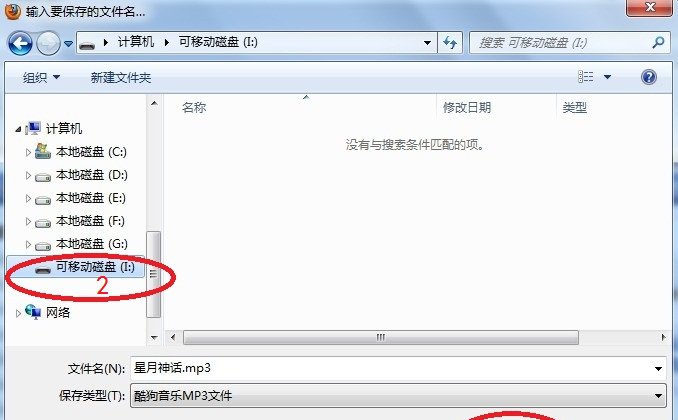 4、點了高速下載后,彈出保存框框。設置好歌曲的保存位置。手機內存卡連上電腦后,顯示的是“可移動磁盤”,找到你手機內存卡保存歌曲的文件夾。然后確定。就可以下載歌曲。
