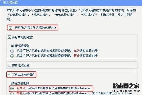 1.選擇缺省過濾規則為:凡是不符合已設IP地址過濾規則的數據包,禁止通過本路由器: