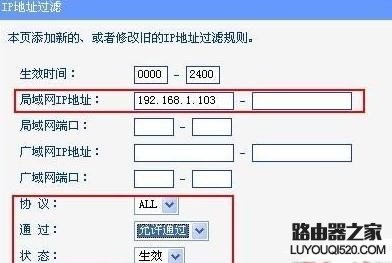 因默認規則為“禁止不符合IP過濾規則的數據包通過路由器”,所以內網電腦IP地址段:192.168.1.100-192.168.1.102不需要進行添加,默認禁止其通過。