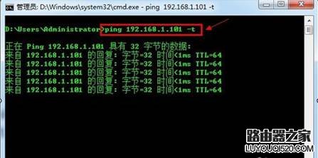 檢測(cè)IP地址配置是否正確。在MSDOS中輸入“ping 192.168.1.101 -t”若信息接收成功說明設(shè)置正常,否者請(qǐng)重新設(shè)置。