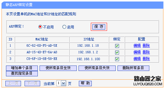 主路由器設置IP與MAC地址綁定防止ARP欺騙,可以將ARP綁定關閉后嘗試上網,如下圖所示: