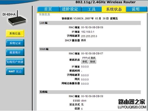 2.然后,它會出來一個對話框,要你輸入用戶名和密碼,一般用戶名和密碼都是admin,如果不是,查看你的說明書!3.然后,你就應該進入一個頁面了,在頁面的左邊找到一個“運行狀態”,找不到?睜大眼睛繼續找!!!單擊它.