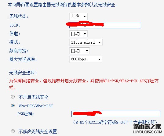 3.WPA-PSK/WPA2-PSK,PSK密碼:設置一個復雜點的密碼吧
