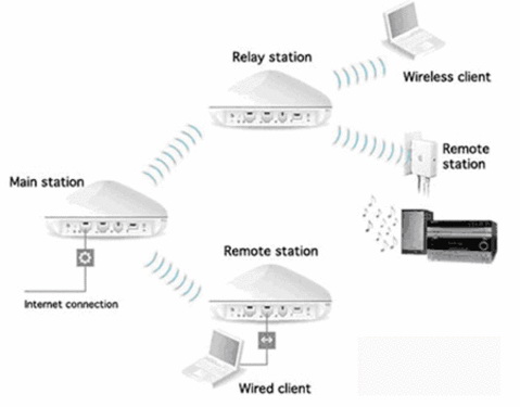 支持WDS技術的無線AP或無線路由具有混合的無線局域網工作模式,可以支持在點對點、點對多點、中繼應用模式下的無線訪問點(無線AP或無線路由),同時工作在兩種工作模式狀態。