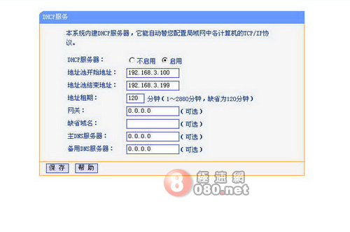 開啟DHCP功能,設置如上,這樣一來A路由的設置基本算完成。