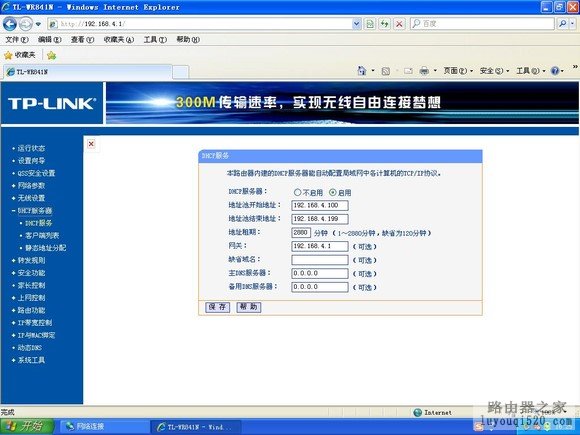 我使用的是 TP-LINK TL-WR841N 802.11N 300M 無線寬帶路由器,接入到二級或多級接口前對路由器做了以下設置;