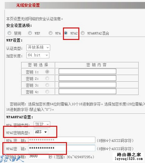 (2)進(jìn)入到【安全設(shè)置】,這里面主要是用來(lái)設(shè)置無(wú)線訪問(wèn)密碼的,路由器品牌不同,但設(shè)置的內(nèi)容基本一致,參照下圖。