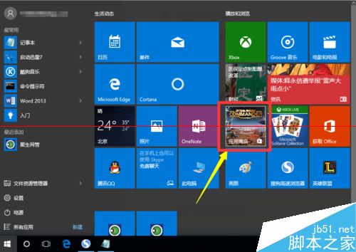 1、點擊Win10正式版桌面左下角的“Windows”按鈕,打開的擴展菜單中找到“播放和瀏覽”欄目中的”應用商店“進入。