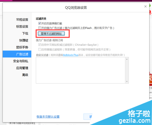如果有想要的網(wǎng)站不用過(guò)濾廣告請(qǐng)點(diǎn)擊這里添加你想要不用過(guò)濾的網(wǎng)站的網(wǎng)址。