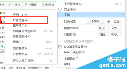 在工具欄里朋友們會(huì)看到一個(gè)廣告過(guò)濾的選項(xiàng)單擊打開(kāi)如下圖所示。