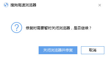 點擊快速修復會彈出修復時需要暫時關閉瀏覽器,是否繼續,點擊關閉瀏覽器并修復,