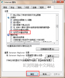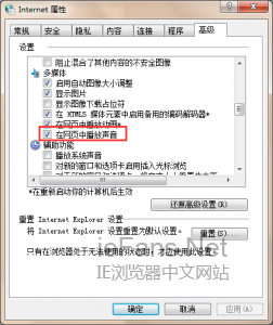 在高級選項中,向下拉動下拉條,找到在“網頁中播放聲音”選項。如圖所示: