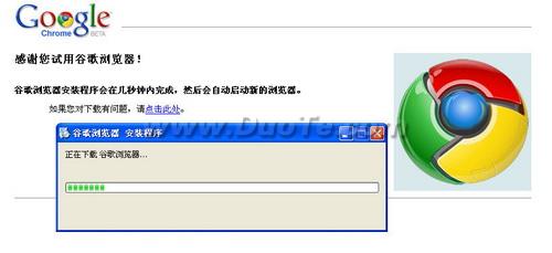 選擇“接受并安裝”后,首先會下載一個大小為475KB的安裝包,這是一個引導安裝文件。運行后會自動下載所需的安裝文件,根據網絡環境不同所需時間也不同。【xbeta補:如果你需要代理服務器+用戶名/密碼上網,則很可能無法安裝??梢杂么霜毩惭b鏈接,但不保證更新】目前Chrome瀏覽器僅支持Windows XP和Windows Vista。據稱面向Linux和蘋果Mac OS X系統的產品正在開發中。
