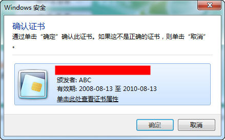 這時,再打開IE8來登錄網上銀行(這里就以登錄農行為例),點擊“證書登陸”,此時會彈出“正在平鋪證書”的對話框,然后彈出“Windows安全”確認證書的對話框,在對話框中就可以看到你的證書了,點擊“確定”使用該證書來登錄網上銀行。成功登陸了網上銀行后你就可以進行各種在線的銀行交易了。