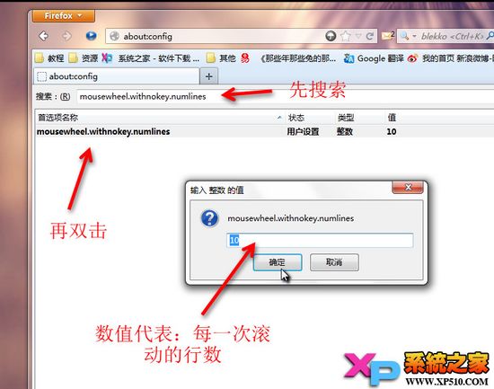 接著我們還是在搜索框這個地方,輸入:mousewheel.withnokey.numlines ,然后雙擊該項,然后按照自己習慣設置一下數值。Ps :這里的數值代表沒滾動一次滑輪,所滾動的行數。例如數值為10時,我們滾動一次就是10行。