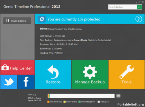 今天在這里介紹的就是這樣一款(近似)不間斷備份工具,GenieTimeline2012,下載http://www.xdowns.com /soft/6/119/2009/Soft_55960.html?它的最新版采用了Windows8Metro風格的界面,能夠快速智能備份選定的個人資料和重要數據。