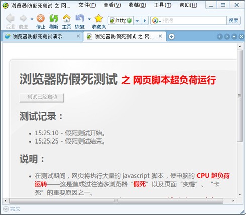 瀏覽器假死問(wèn)題則是大家最煩惱的一點(diǎn),經(jīng)常有瀏覽器以告別假死作為噱頭炒作,但經(jīng)過(guò)實(shí)測(cè)后卻發(fā)現(xiàn)和實(shí)際相距甚遠(yuǎn)。而作為一款專業(yè)的安全瀏覽器,我們?cè)趯?shí)測(cè)過(guò)程中則發(fā)現(xiàn),在“頁(yè)面防假死”測(cè)試過(guò)程中,瑞星安全瀏覽器能有效承受超負(fù)荷的內(nèi)容承載,全面屏蔽變卡、變慢、崩潰等瀏覽問(wèn)題,真正保障您流暢的上網(wǎng)體驗(yàn)