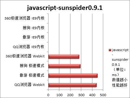 Firefox曾經憑借其出色的Javascript執行效率獲得了開發者的青睞,從那以后,對Javascript引擎的優化成為另一重點。而隨著云計算的日益普及,在線應用的功能正在逐步向桌面終端軟件靠近,由此帶來的執行效率則關系著在線應用的成敗,因此我們分別對Javascript執行效率與頁面負載能力進行測試,測試項目包括Javascript-sunspider0.9、Javascript-V8、Javascript- speed_battle、javascript-sunspider0.9.1以及頁面負載測試PeaceKeeper。