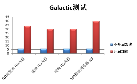 我們使用微軟提供的兩個測試項目Flash Bowl和Galactic進行測試,由于Webkit核心不支持GPU硬件加速,因此此項測試只測試IE9核心。